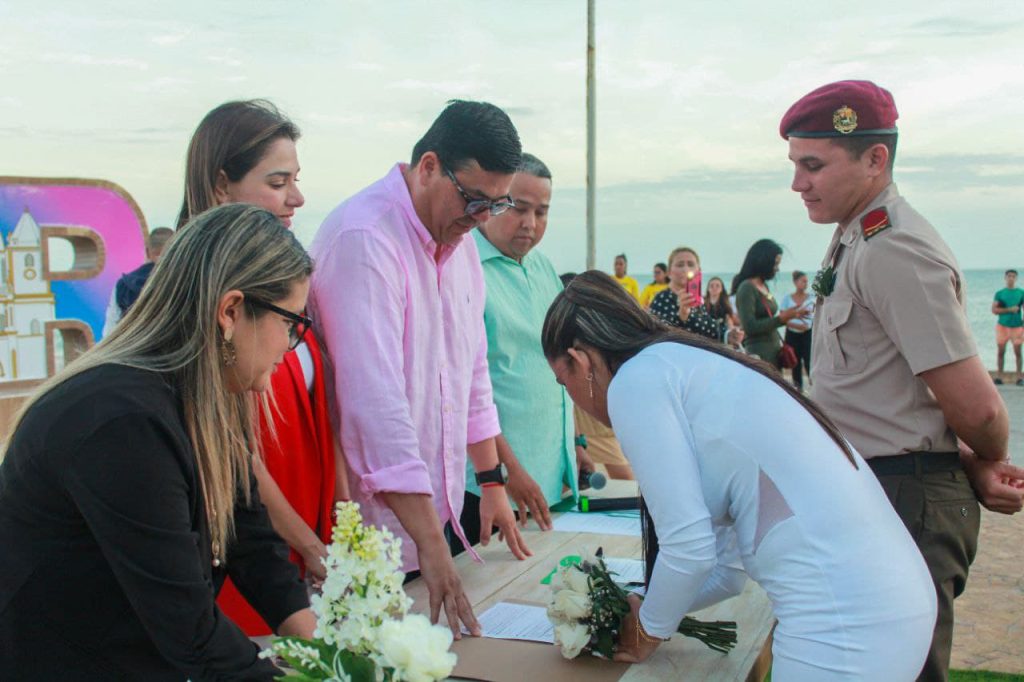Con el mar de fondo y una hermosa puesta de sol, en el marco del Día del Amor y de la Amistad, siete parejas sellaron su amor en las tradicionales bodas comunitarias presididas por el alcalde José Antonio González «El Chino» y la primera dama, Daniela Parra.