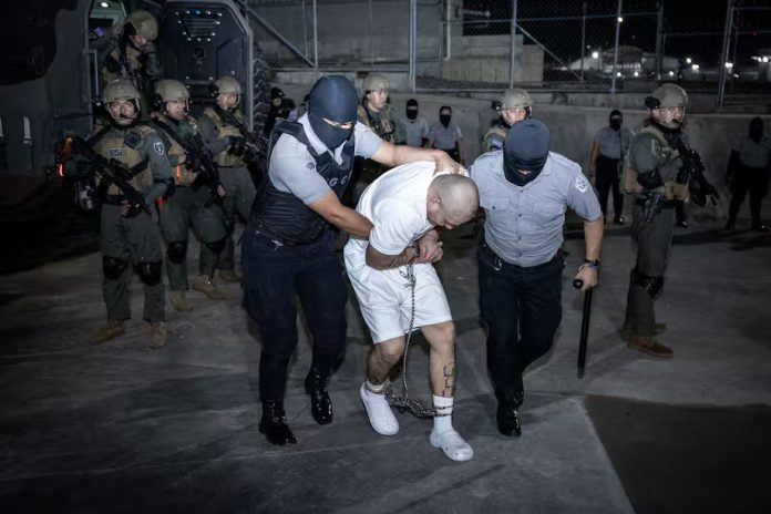 La publicación iba acompañada de un video en el que se puede observar el fuerte despligue de seguridad con el que fueron recibidos los venezolanos, a quienes raparon el cabello y la barba para su posterior reclusión en la cárcel de máxima seguridad, conocida como una de las «cárceles más duras del mundo», inaugurada en 2023, en medio de la guerra contra las pandillas que inició Bukele en El Salvador, uno de los países con mayores índices de criminalidad en el momento.