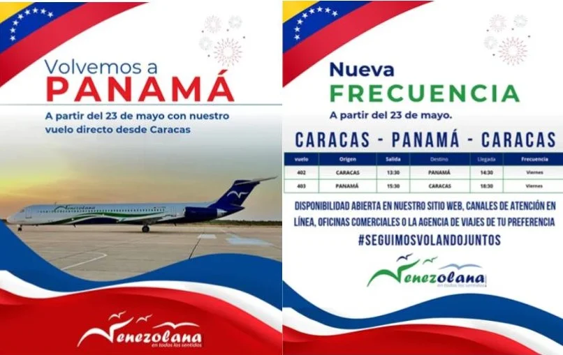 Desde este viernes 23 de mayo quedan reanudados los vuelos comerciales directos entre Panamá y Venezuela, así lo anunció Venezolana de Aviación.