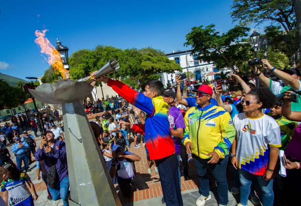 En la Plaza Bolívar de La Asunción, la Gobernadora Marisel Velásquez de Millán, acompañada de los alcaldes de Arismendi Alí Romero y de Marcano Yul Armas, el presidente del Iasdebne Carls Douglas Rodríguez y el director del CDCE Rawuil Quijada, manifestó el orgullo que significa acompañar el paso del Fuego Patrio por el casco central de la capital del estado y entregar la antorcha a la juventud deportista que nos representará en los Juegos.