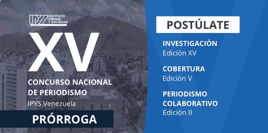 El Instituto Prensa y Sociedad de Venezuela (IPYS Venezuela) amplía hasta el próximo 28 de mayo de 2025, el lapso de postulaciones al XV Concurso Nacional de Periodismo en sus categorías: Periodismo de Investigación y Cobertura. Consulta aquí las bases y condiciones para aplicar. Los aspirantes deben llenar un sencillo formulario y luego formalizar la inscripción mediante […]