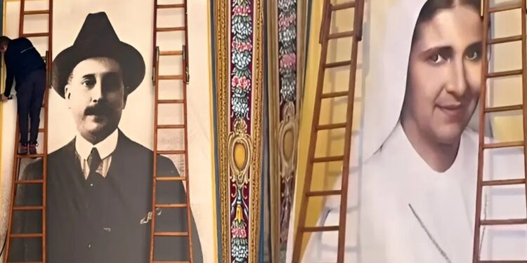 Rumbo a la canonización: tapices de José Gregorio Hernández y Carmen Rendiles ya fueron instalados en la plaza de San Pedro