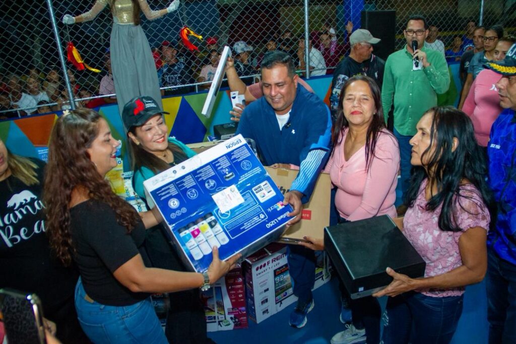 Gracias a la gestión de la gobernadora Marisel Velásquez este día, igualmente, se hizo entrega de implementos deportivos, así como de computadoras, impresoras y televisores destinados a la Sala de Autogobierno de las Comunas Forjadores de la Patria y Cacique Isabel, pertenecientes a esta localidad.