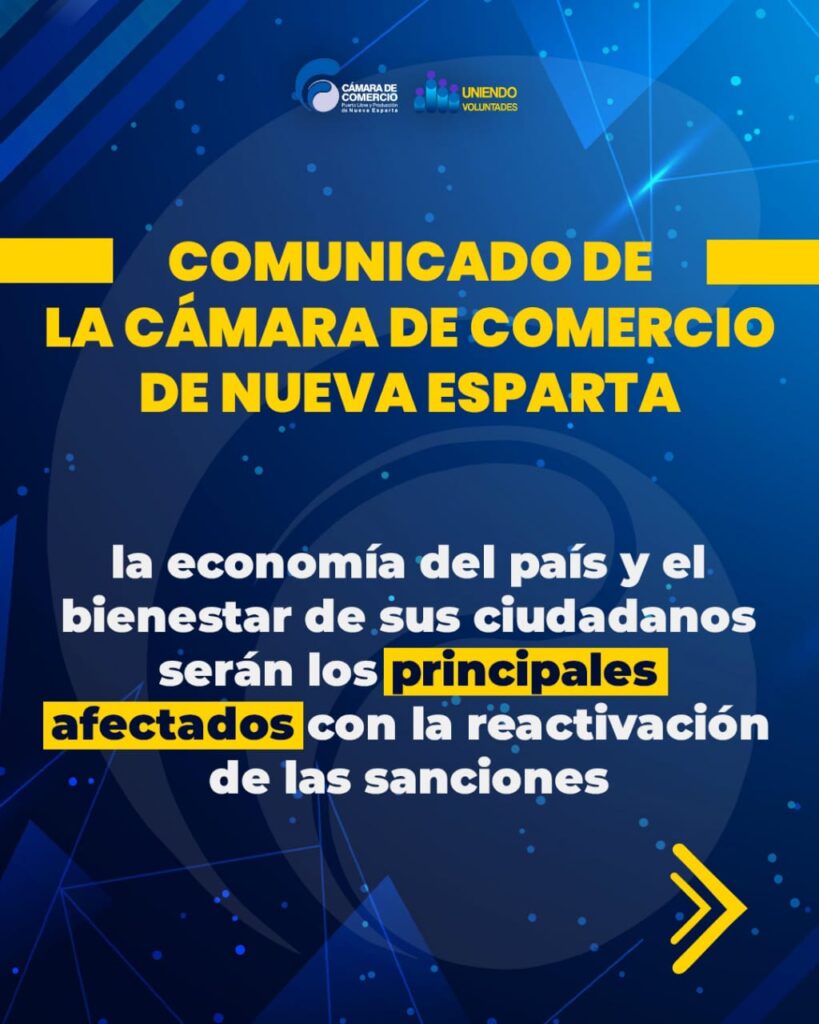 La Cámara de Comercio de Nueva Esparta alerta sobre los efectos de las sanciones económicas
