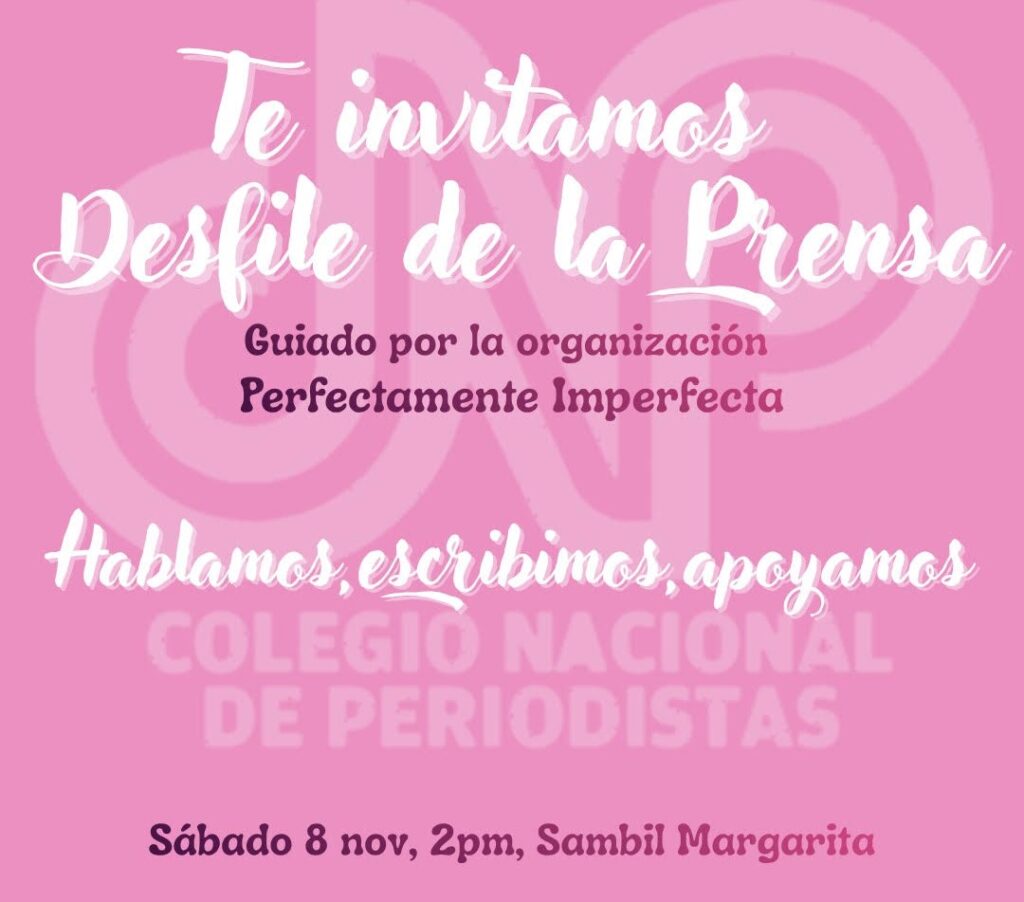 En el marco de las actividades conmemorativas del Mes Rosa, el Colegio Nacional de Periodistas (CNP), seccional Nueva Esparta, se suma a la campaña de concientización sobre el cáncer de mama con una emotiva jornada que culminará con el “Desfile de la Prensa”, este sábado 8 de noviembre a las 2:00 p.m. en el centro […]