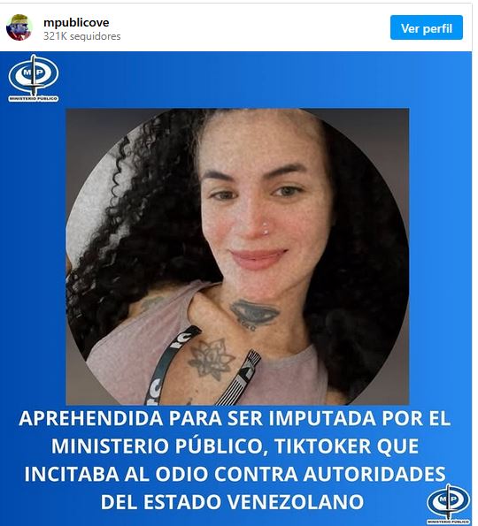 El fiscal general, Tarek William Saab, informó la noche de este viernes 25 de julio que detuvo a la tiktoker Evelin Velásquez, conocida como «La Hija de Dios» en redes sociales, por «incitación al odio contra las autoridades venezolanas». «El fiscal general de la República informa que fue aprehendida en flagrancia para ser imputada por […]
