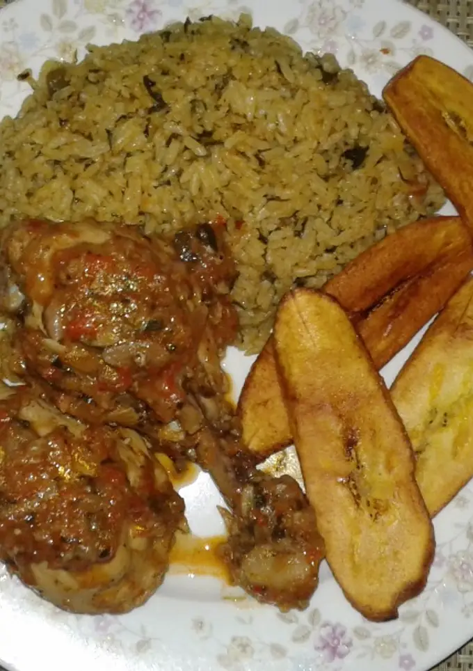 Comida muy casera de domingo arroz de verduras y pollo sudado